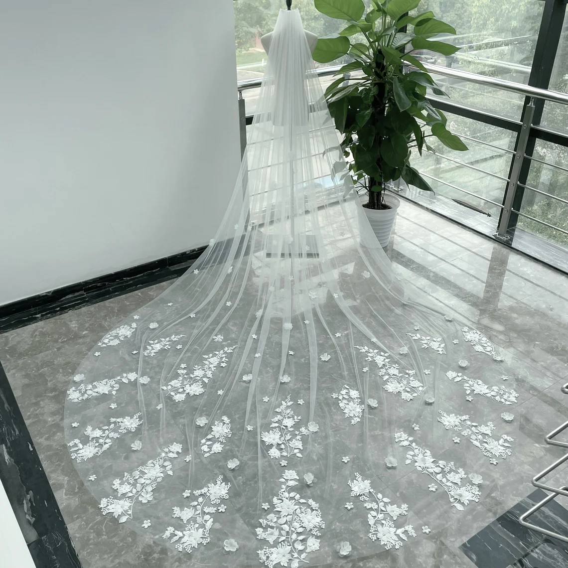 Floral Hem Lace Veil Flower Lace Veil With Clear Sequins Cathedral Bridal Veil Chapel Veil Gorgeous Lace Veil Single Tier Veil With Comb Beige 118 Walmart Com